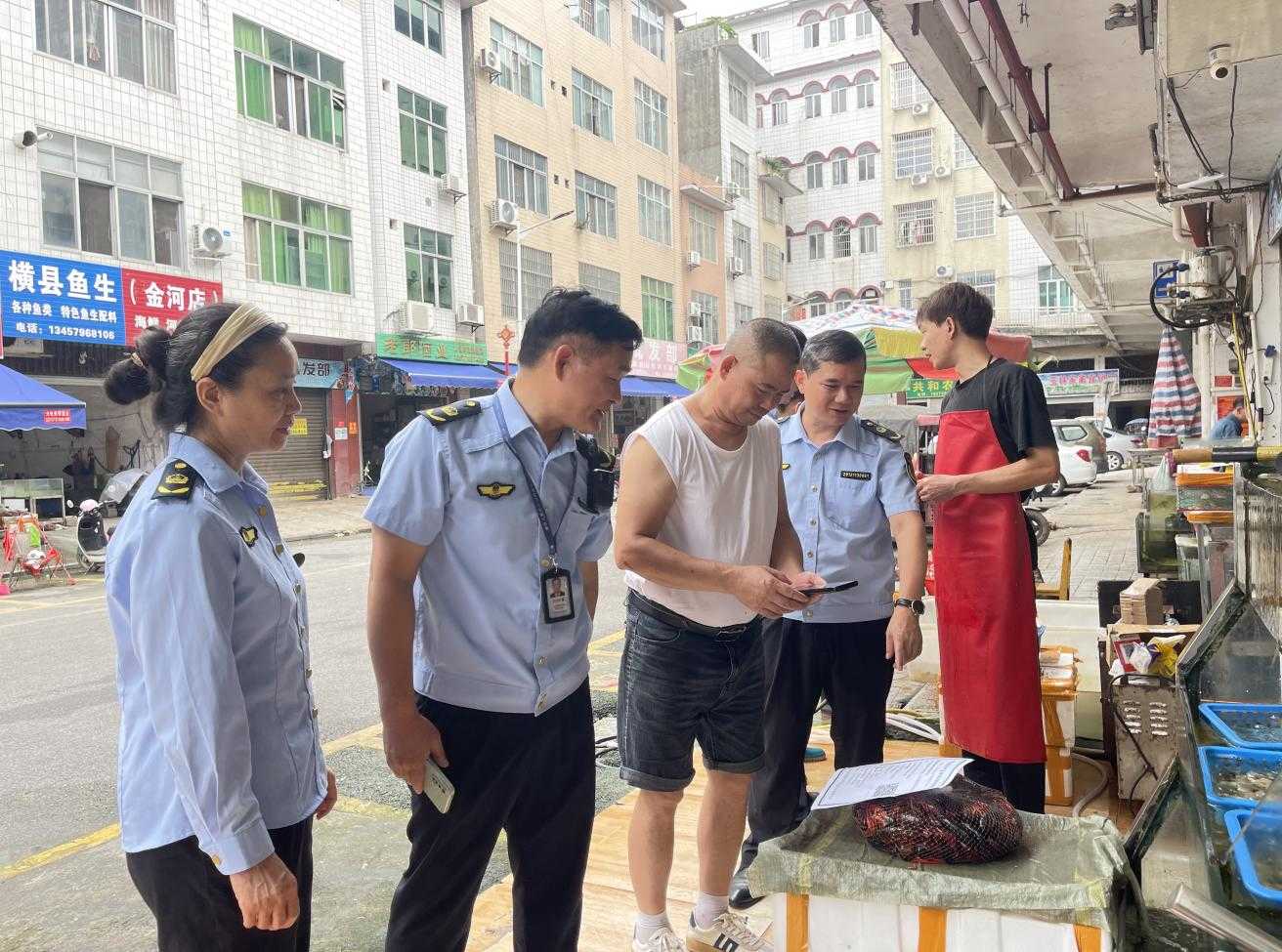 5月22日上午两部分组织12名法律人员对县城区金河市场、城南市场、市场等农贸市场开展沉点食用农产物结合专项整治步履。法律人员则针对市场内24家蔬菜批发摊点、38家水产物运营从体进行监视查抄,市场监视办理局法律人员次要是进货检验、索证索票落实环境,农业农村局法律人员热情地取商户交换沟通,细致农产物许诺达标及格证的主要意义,同时为商户们现场演示了农产物许诺达标及格证的开具流程。从若何登录相关逃溯系统,到精确录入农产物的各项消息,再到最一生成并打印及格证,每一个步调都得详尽入微,确保商户们可以或许熟练控制。